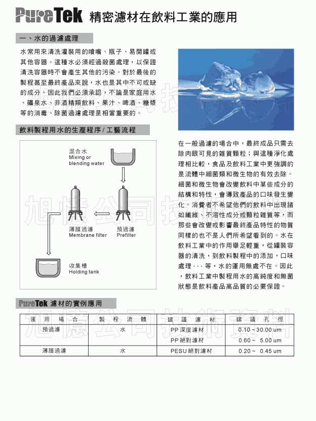 技術資料 “ 精密濾材在飲料工業的應用 ”內容如下,請參考: